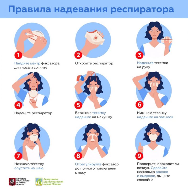 - Обязательно мойте руки перед и после обращения с маской;